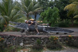 Po udanym polowaniu na małpki, udaliśmy się na fermę krokodyli. Jest to obiekt prowadzony przez biznesmena, który hoduje chyba większość gatunków krokodyli świata. Sprzedaje je do ZOO na całym świecie, jak i na skóry i mięso. Do tego trzepię kasę na turystach organizując wycieczki po fermie.