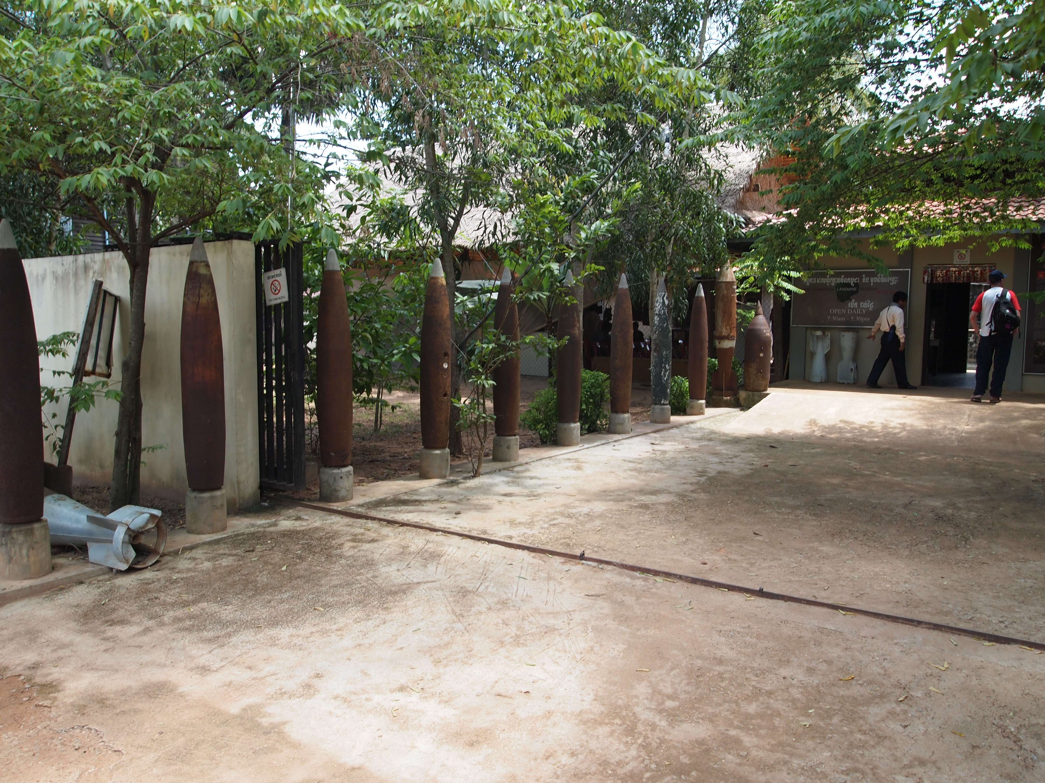 Przy okazji zwiedzania Angkoru wybrałem się do muzeum min lądowych. Prowadzonego przez Aki Ra, byłego żołnierza czerwonych Khmerów, który został siłą zaciągnięty do ich armii i zajmował się układaniem min lądowych. Dzisiaj jest lokalnym ekspertem od spraw rozminowywania a eksponaty złożone w muzeum są wydobyte własnoręcznie przez Aki Rę. Przy muzeum prowadzi również sierociniec dla dzieci poszkodowanych przez miny, których jest tutaj najwięcej na całym świecie. Kambodża to kraj, w którym zejście z utartego szlaku może w najlepszym razie grozić urwaniem nogi a w najgorszym śmiercią. Na drugim miejscu pod względem ilości min jest Afganistan. Z uwagi na specyficzne warunki, Kambodża jest pełna ludzi okaleczonych przez wybuch miny. Najczęściej wieśniaków i rolników, którzy podczas pracy w polu weszli na minę. Widok człowieka bez ręki czy nogi nie jest niczym niezwykłym. Trafiają się również ludzie pozbawieni wszystkich kończyn. Kalecy z reguły jeżeli mają jeszcze fizyczną możliwość, zajmują się muzyką. Stoją niedaleko świątyń w większych grupkach i grają kambodżańską muzykę ludową. Z tego co się dowiedziałem, to są uczeni podstaw muzyki przez różne organizacje NGO i jest to w zasadzie jedyna po za żebraniem możliwa forma zarobkowania dla nich.